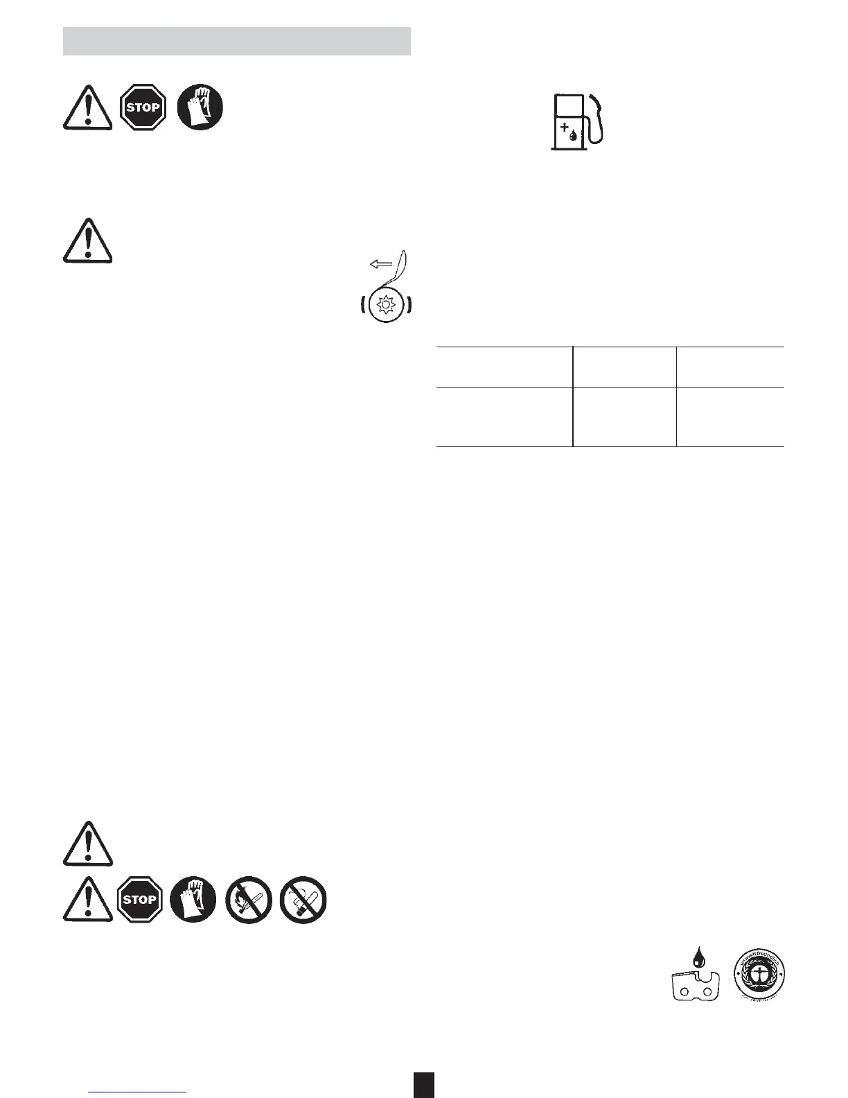 • Never allow children access to fuel and bar oil.