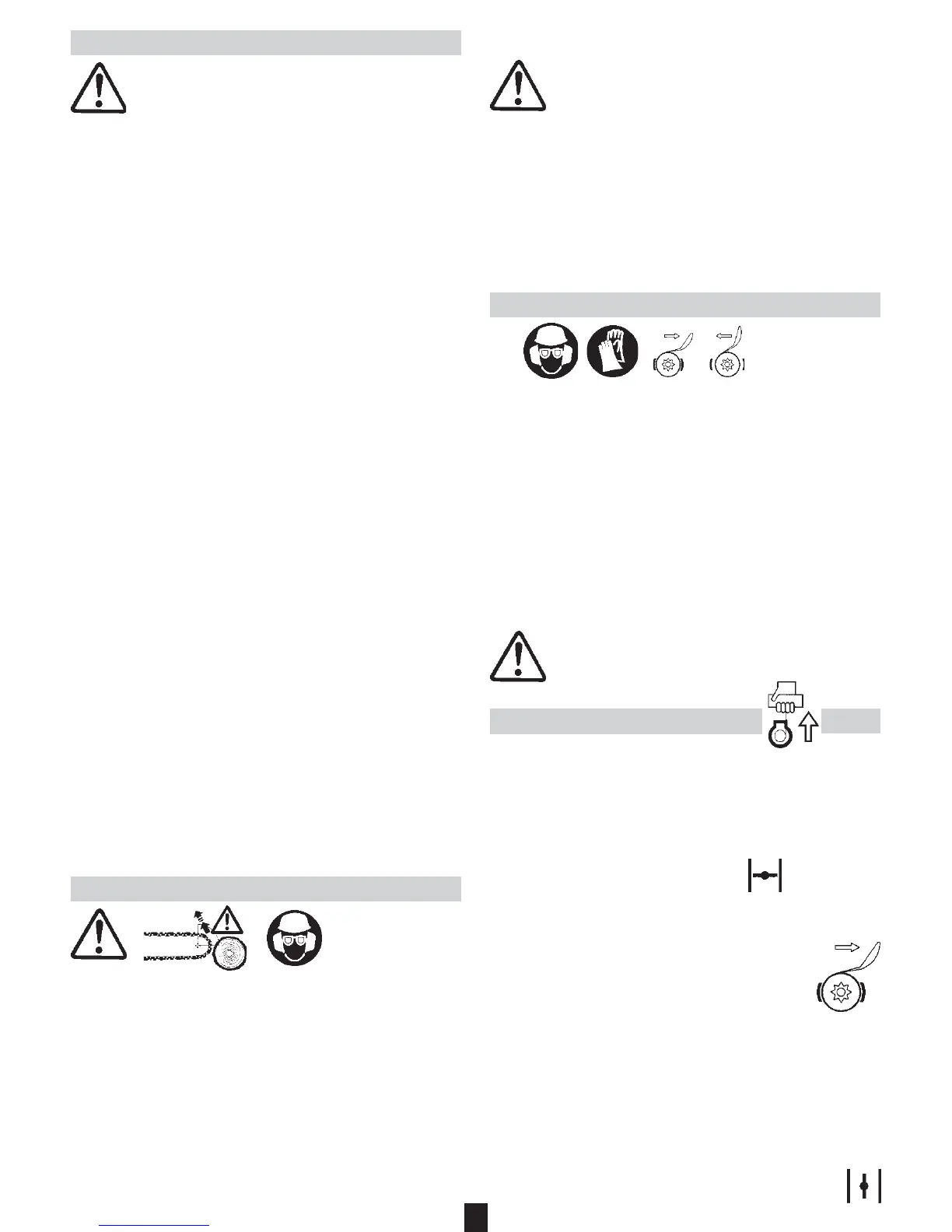 - Vérifiez le bon engagement du guide chaîne avant de démarrer.