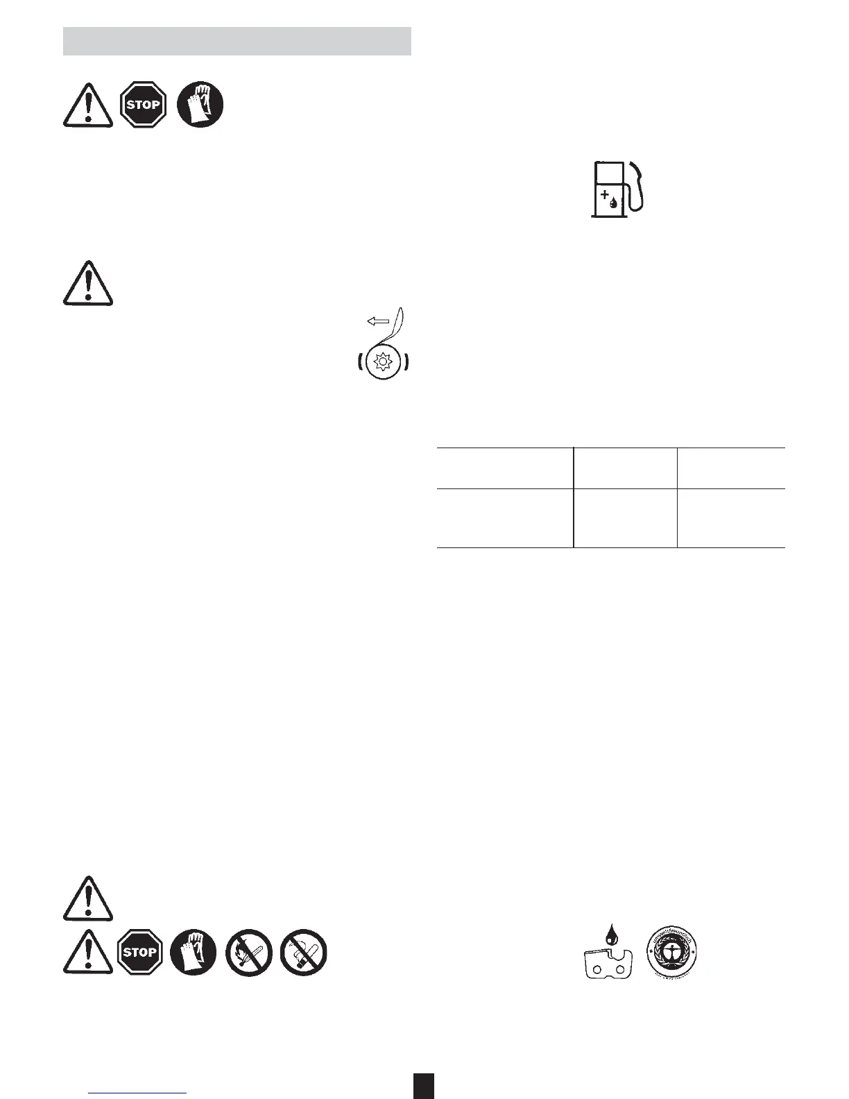 - Brandstof en kettingolie alleen in goedgekeurde en