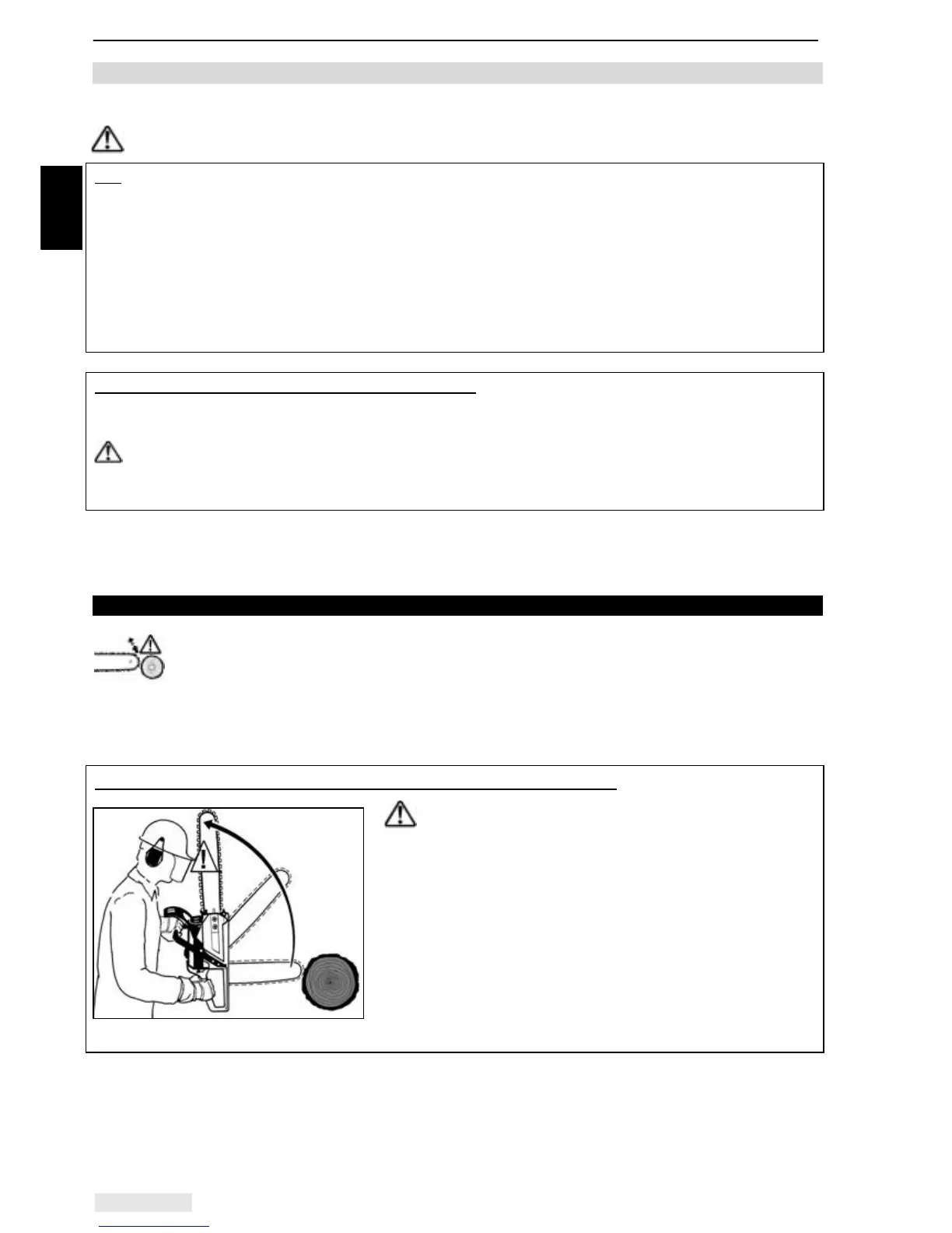 stuck in the cut. In the process, the chainsaw is accelerated violently and uncontrollably.