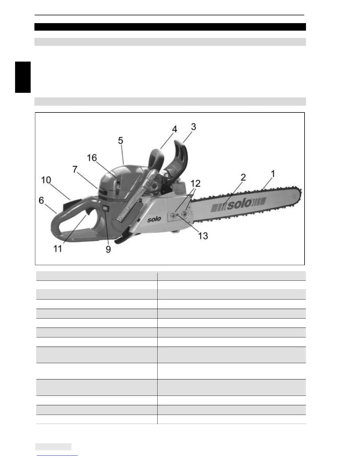 Your SOLO chainsaw - Standard delivery;- Designation of important controls and functional parts