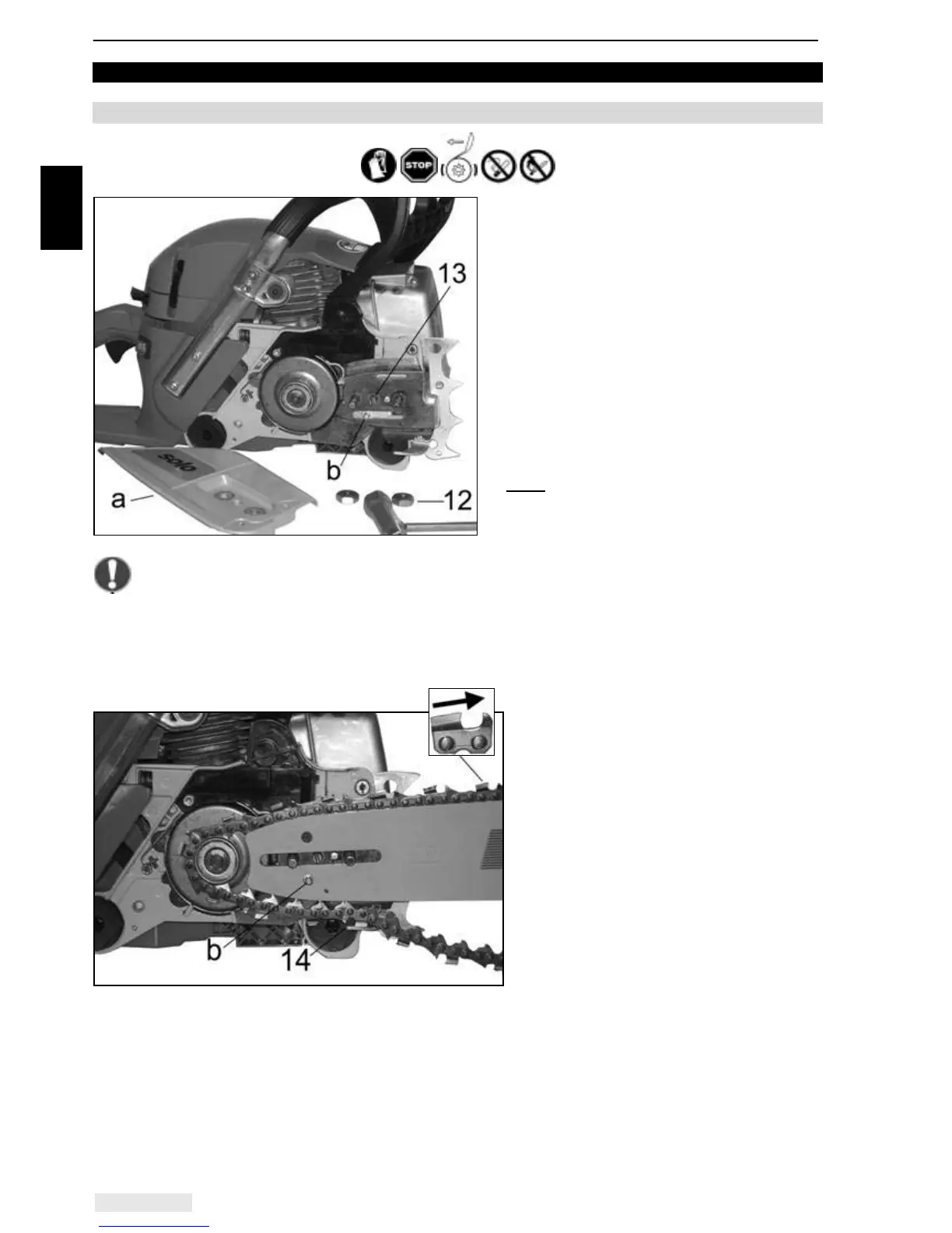 Always install matching components (sprocket, guide rail, saw chain) (see Chapter 9,