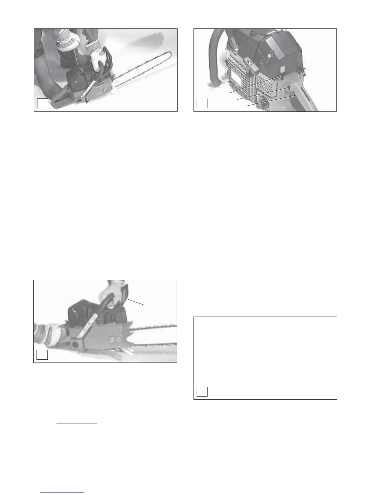 posición firme y colocar la motosierra sobre el suelo, de tal