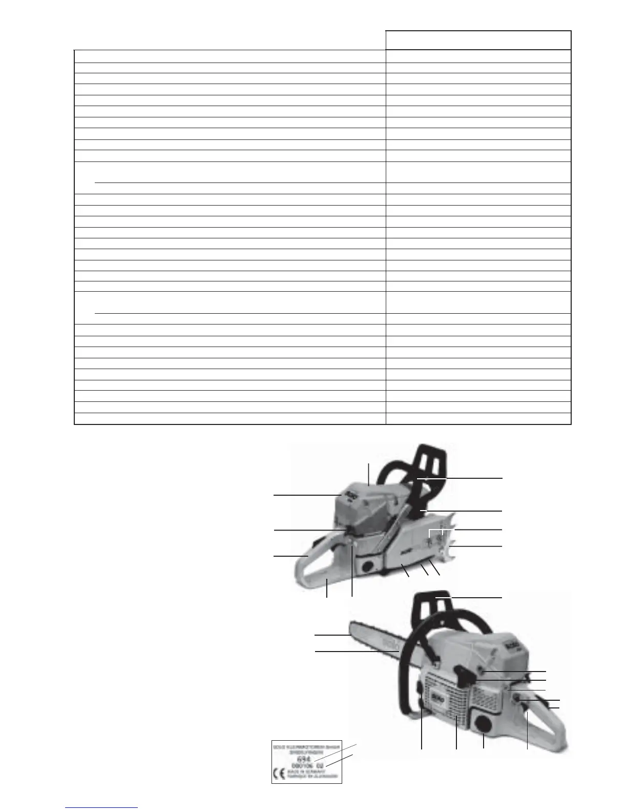 Poids de la tronçonneuse (réservoir vide, sans guide et chaîne) kg 8,2