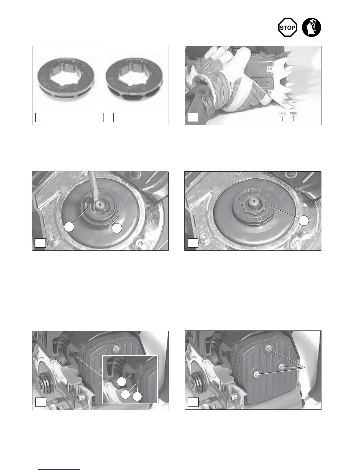 - Retirer la roue à chaîne (E/5) du tambour d’accouple-