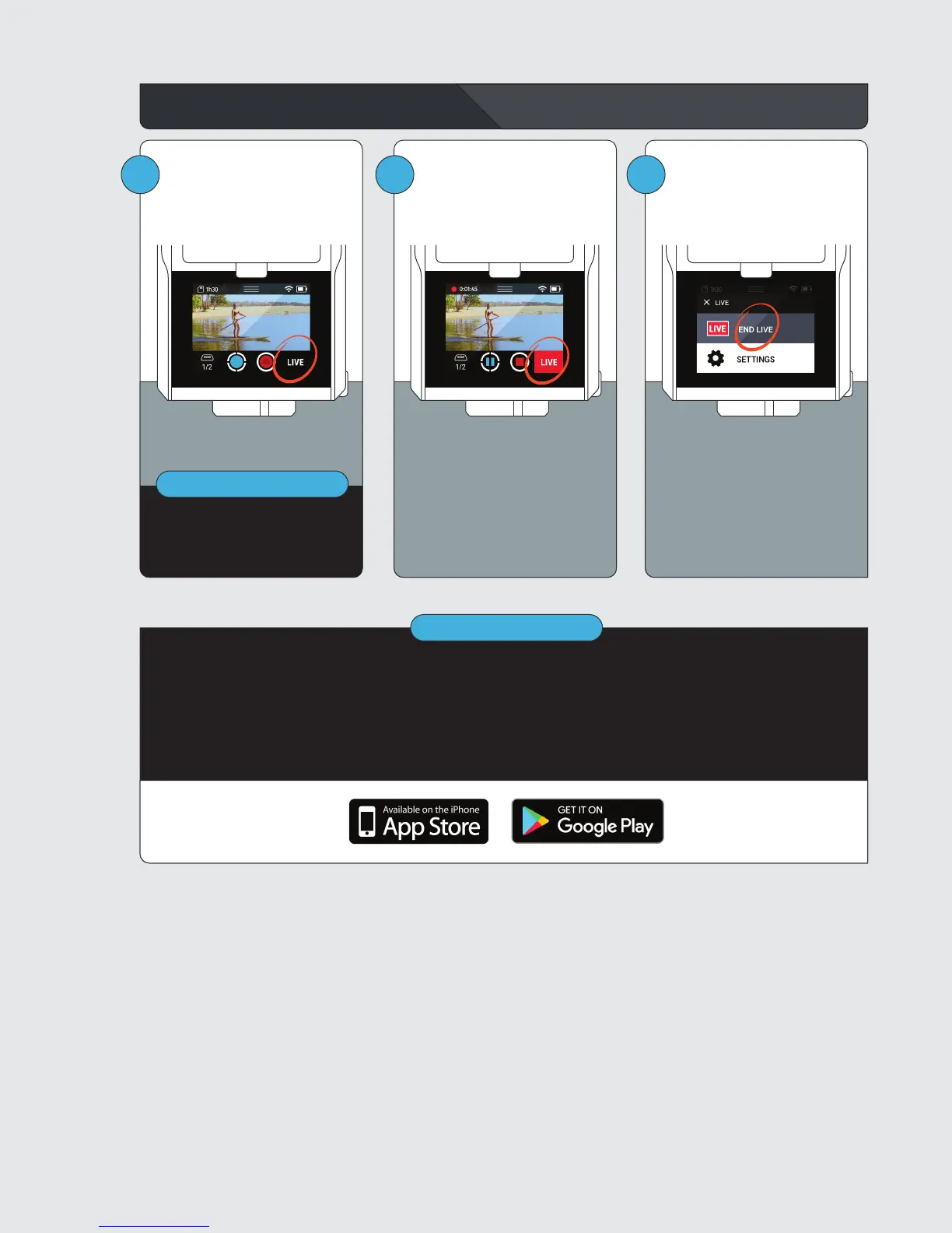 LIVE button, then GO LIVE.