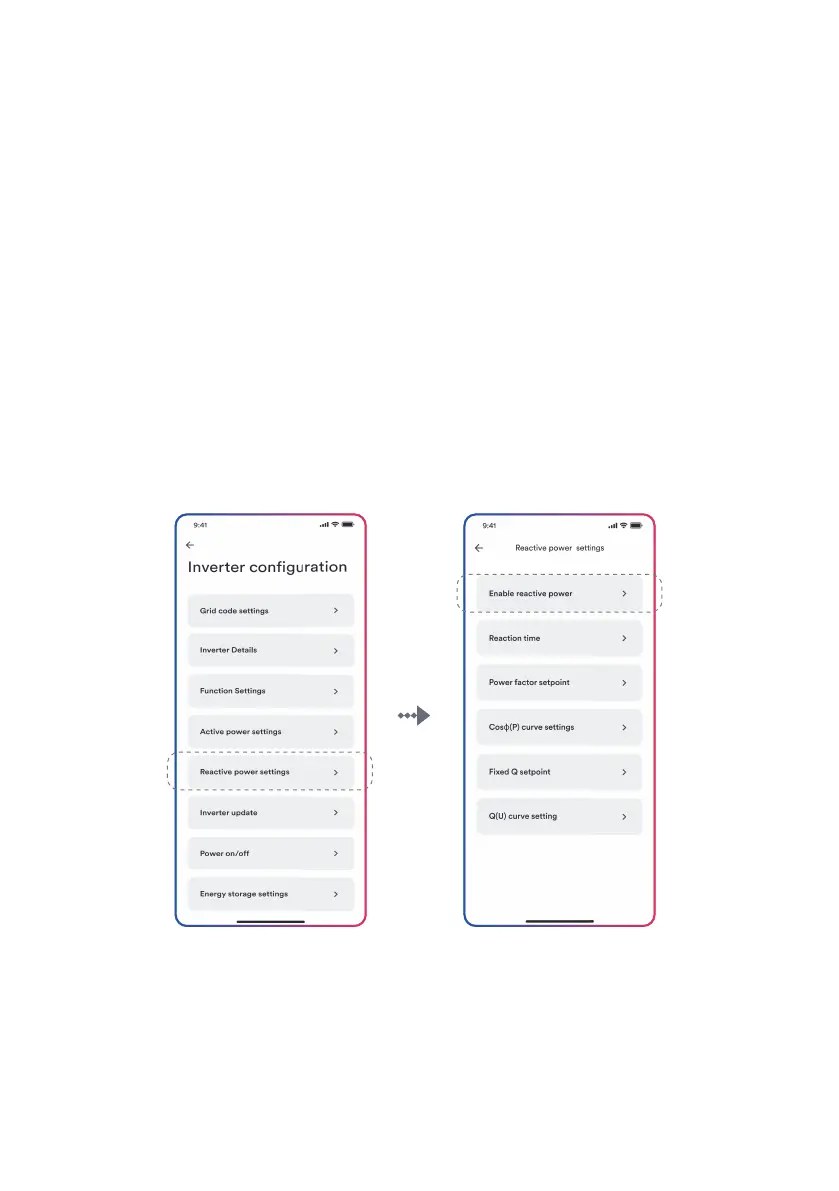 Step 1:Tap “Reactive power settings” to enter to the next page.