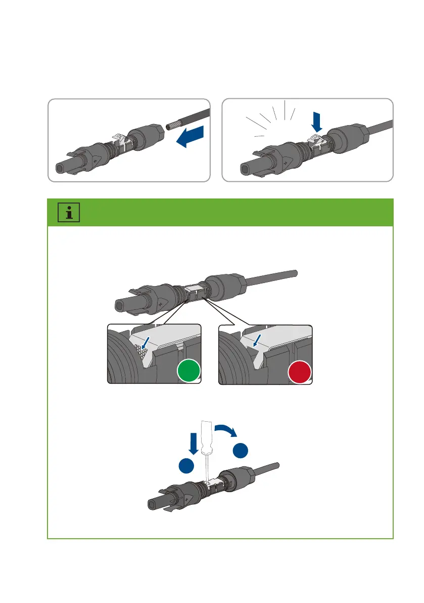 If the stranded wire is not visible in the chamber, the cable is not correctly inserted and the
