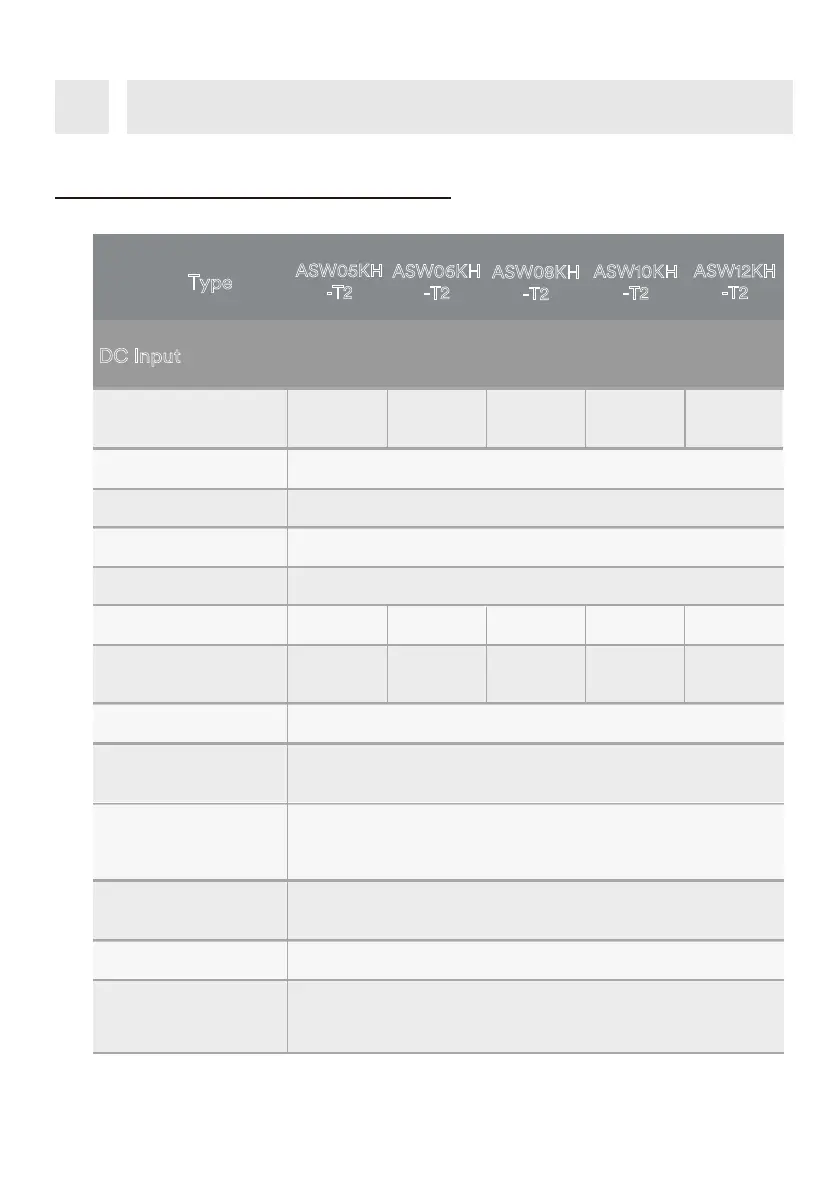 Solplanet ASW06kH-T2 - Technical Data; Asw05 Kh;06 Kh;08 Kh;10 Kh;12 Kh-T2