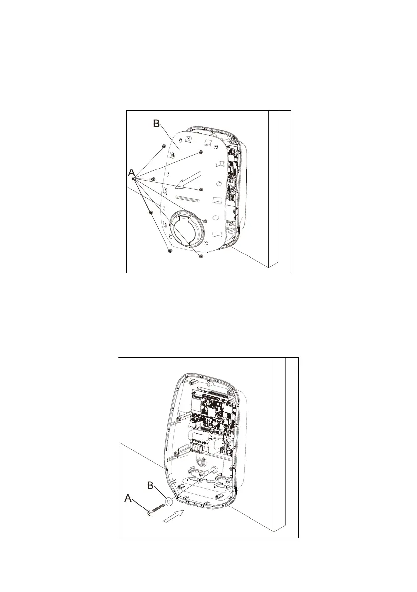 1. Thread the screw (A) through the sealing rubber (B). Then install the