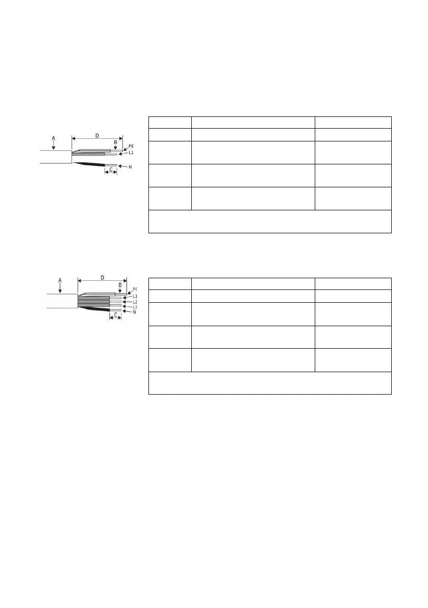1. Strip the incoming AC supply cable as shown below, and crimp the copper