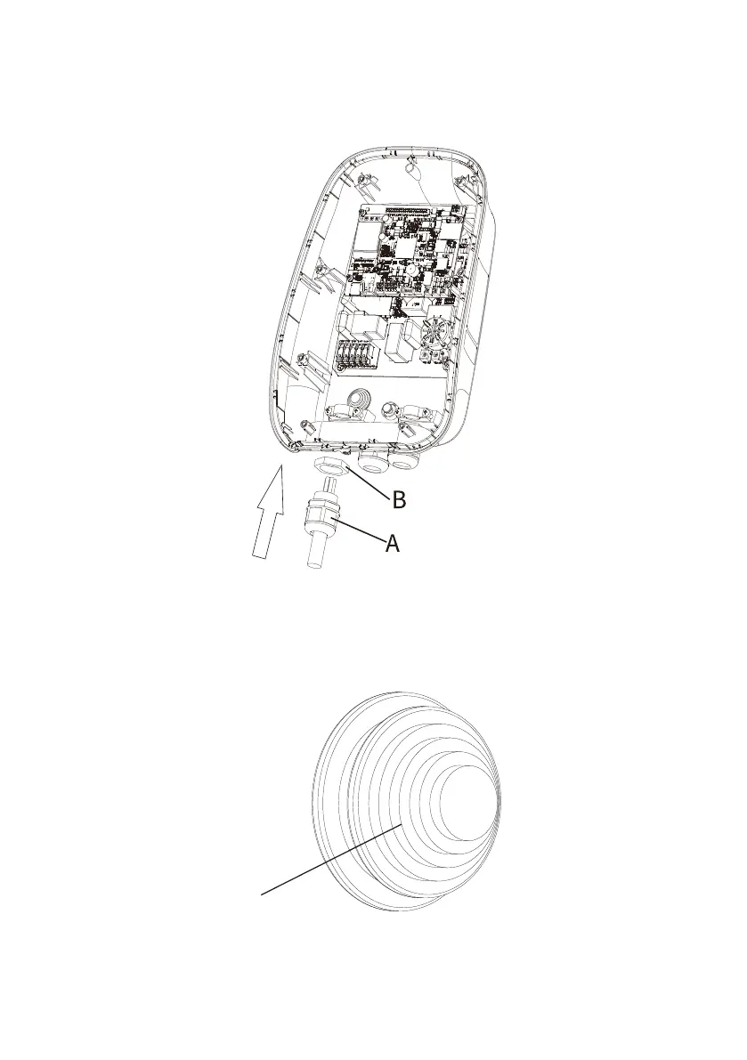 Install the cable gland on the bottom of the enclolsure, fasten the nut (B) and