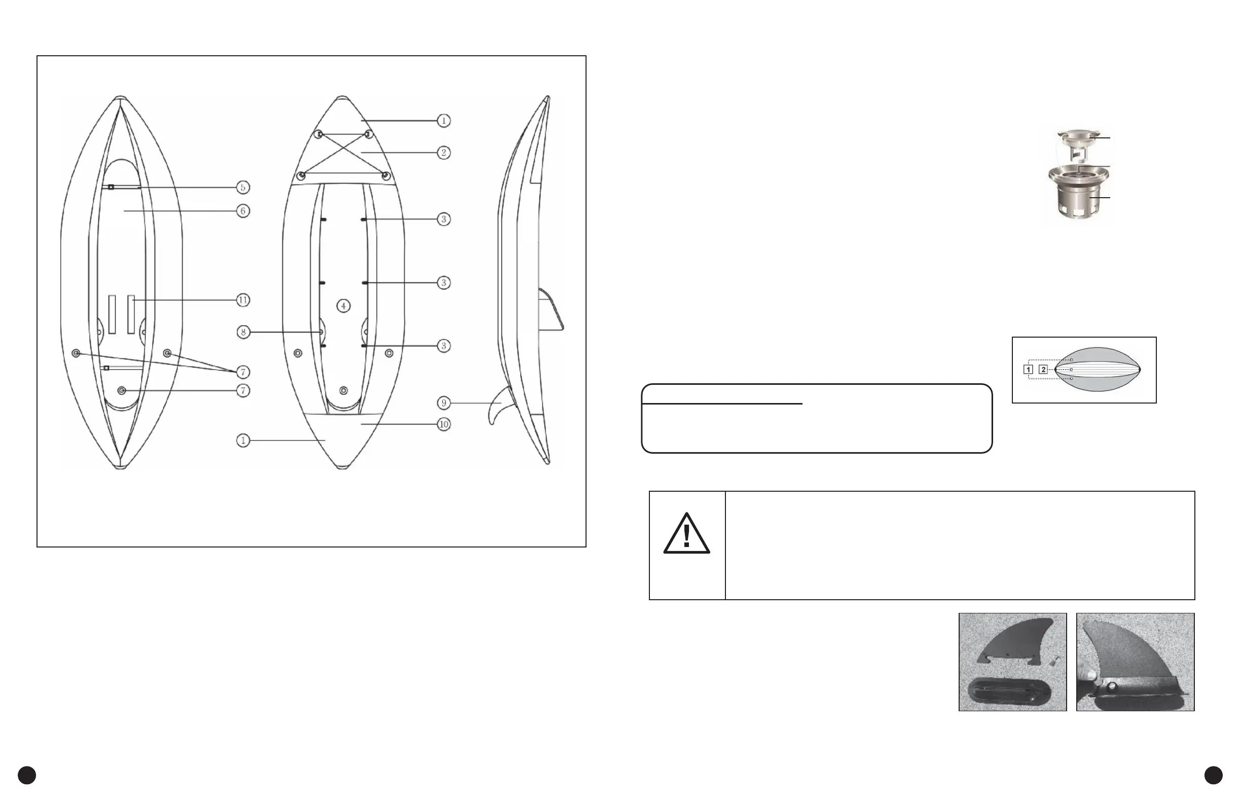 le kayak et l’aileron doit être xé avec une vis et un écrou.