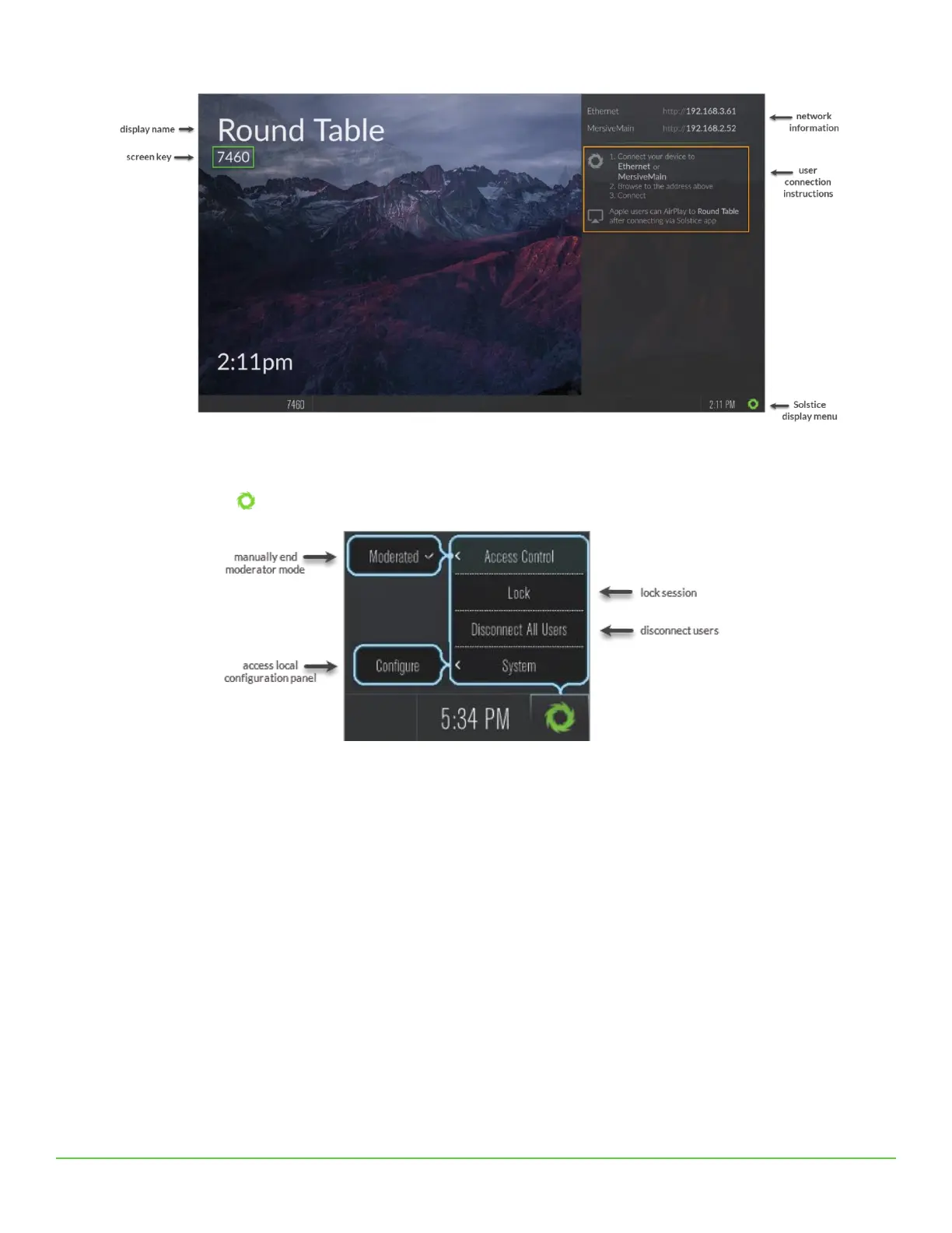 • Access Control: Allows a user to manually remove the display from moderator mode in the case that the user