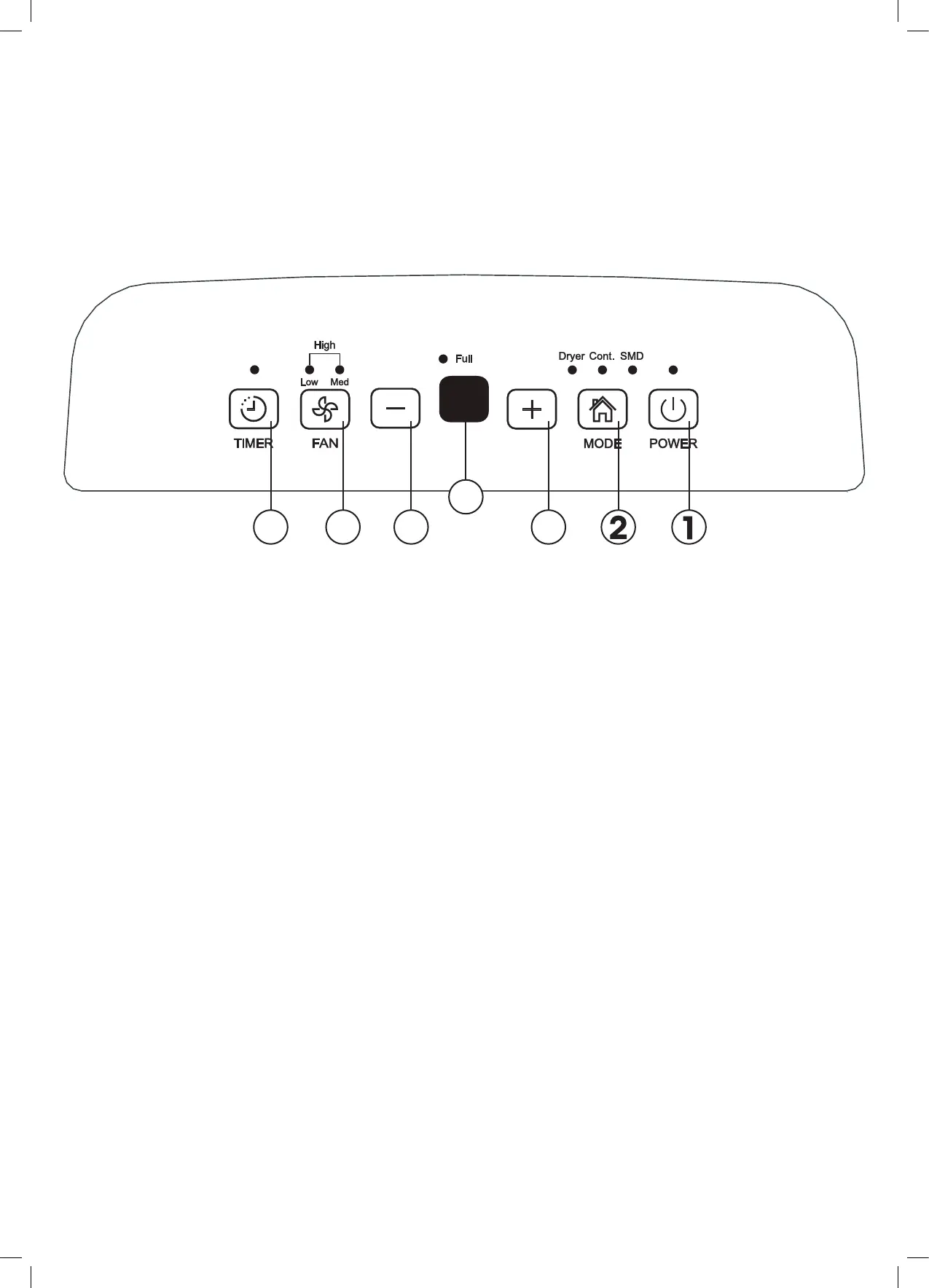 Press this to Power on and off the Dehumidifier. Note: when the compressor starts and/or stops