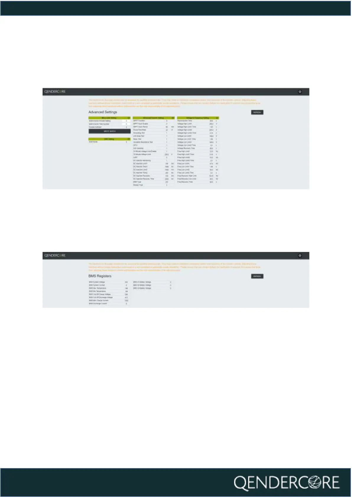 The BMS Registers page is provided to show values recorded by a connected