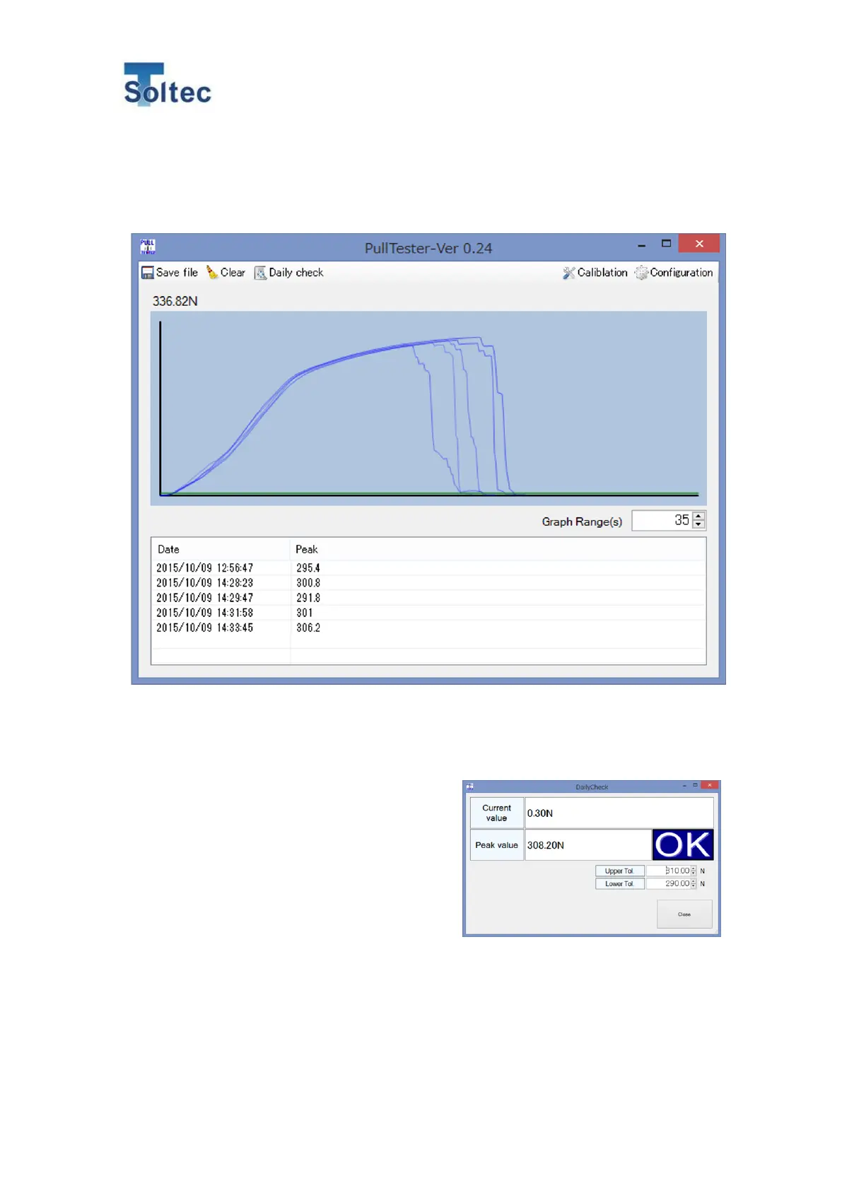 Pressing Clear allows to delete temporarily saved data (date & time, and peak value).