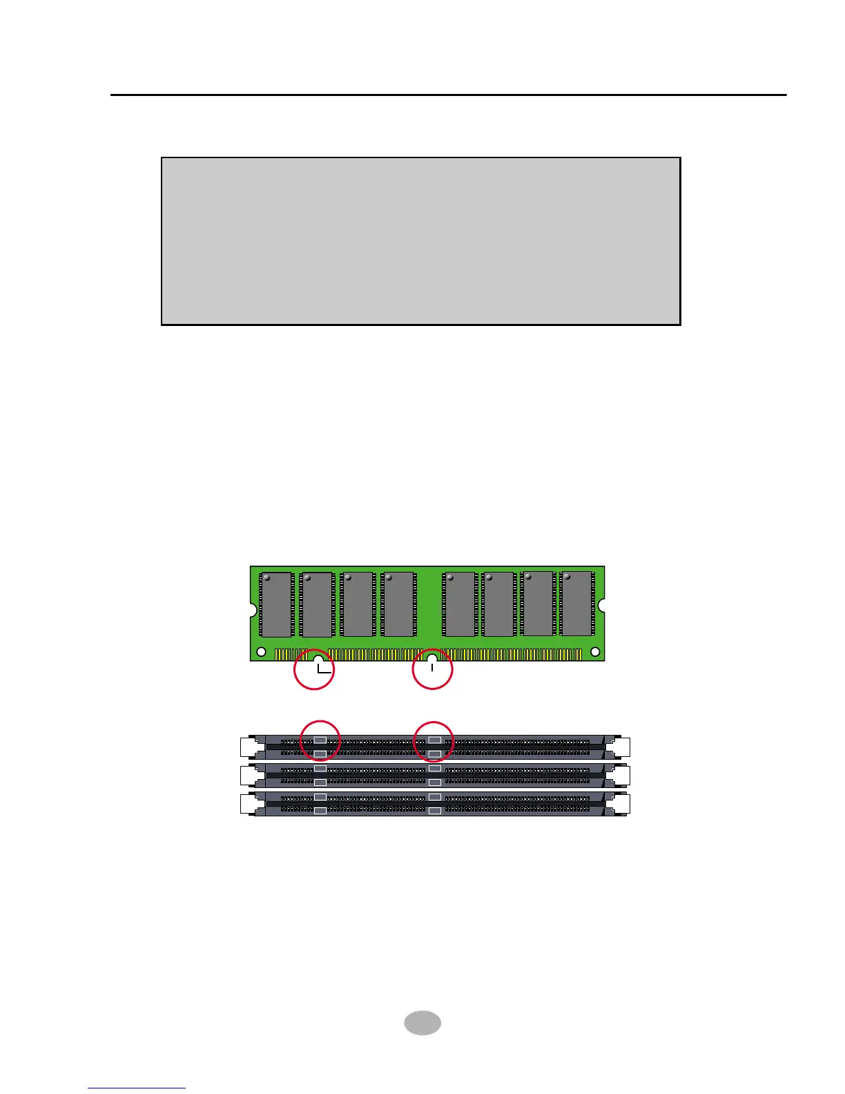 • Insert the module(s) as shown below, DIMMs have 168-pins and two