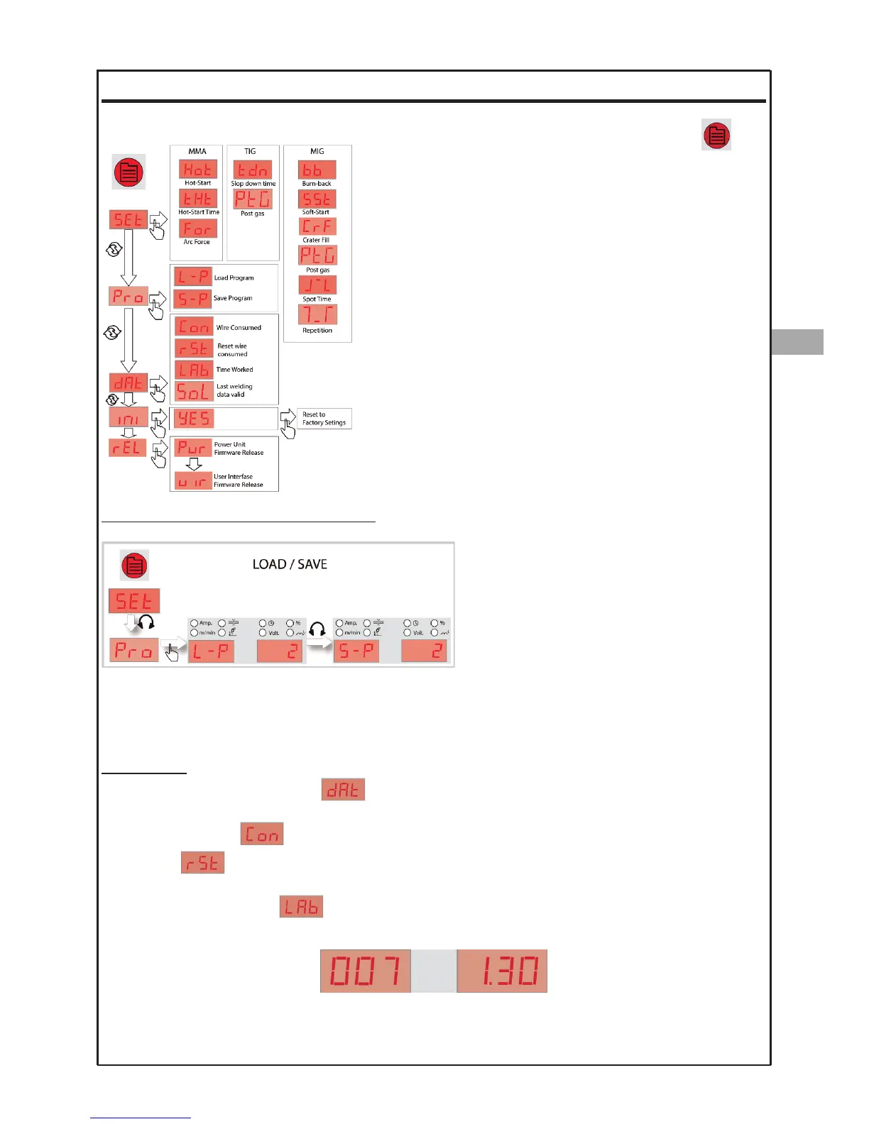 El consumo de alambre se visualizará en m y cm. Este valor lo podemos resetear en cualquier momento