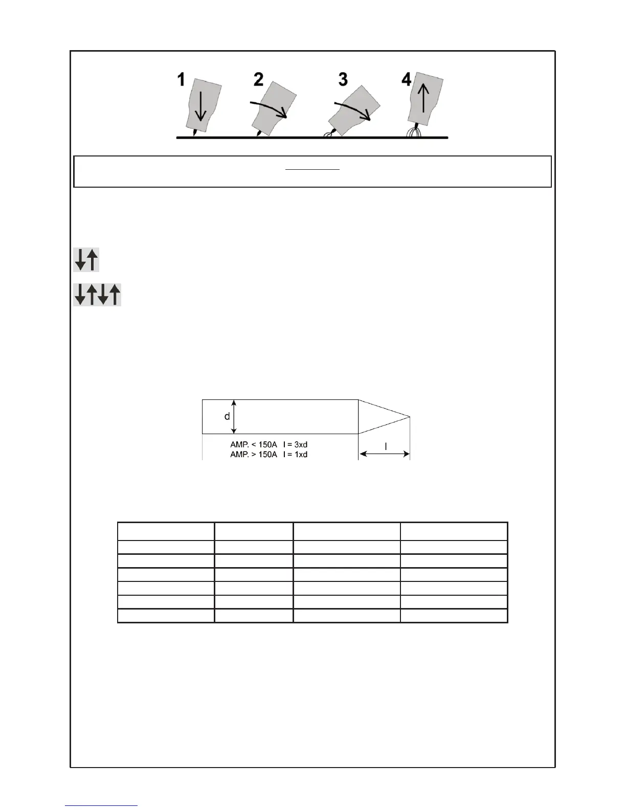 concentrar más en la raíz de la soldadura. En función del amperaje a utilizar, se recomienda afilar mas o menos el elec-