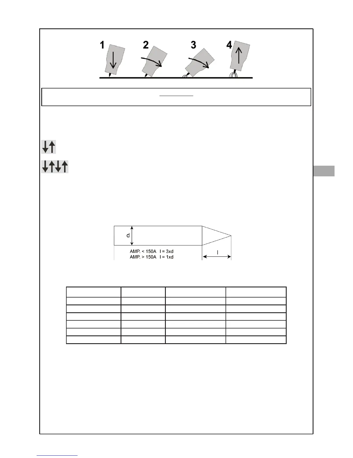 centrated at the weld root. Depending on the amperage used, it is recommended to sharpen the electrode with a gre-