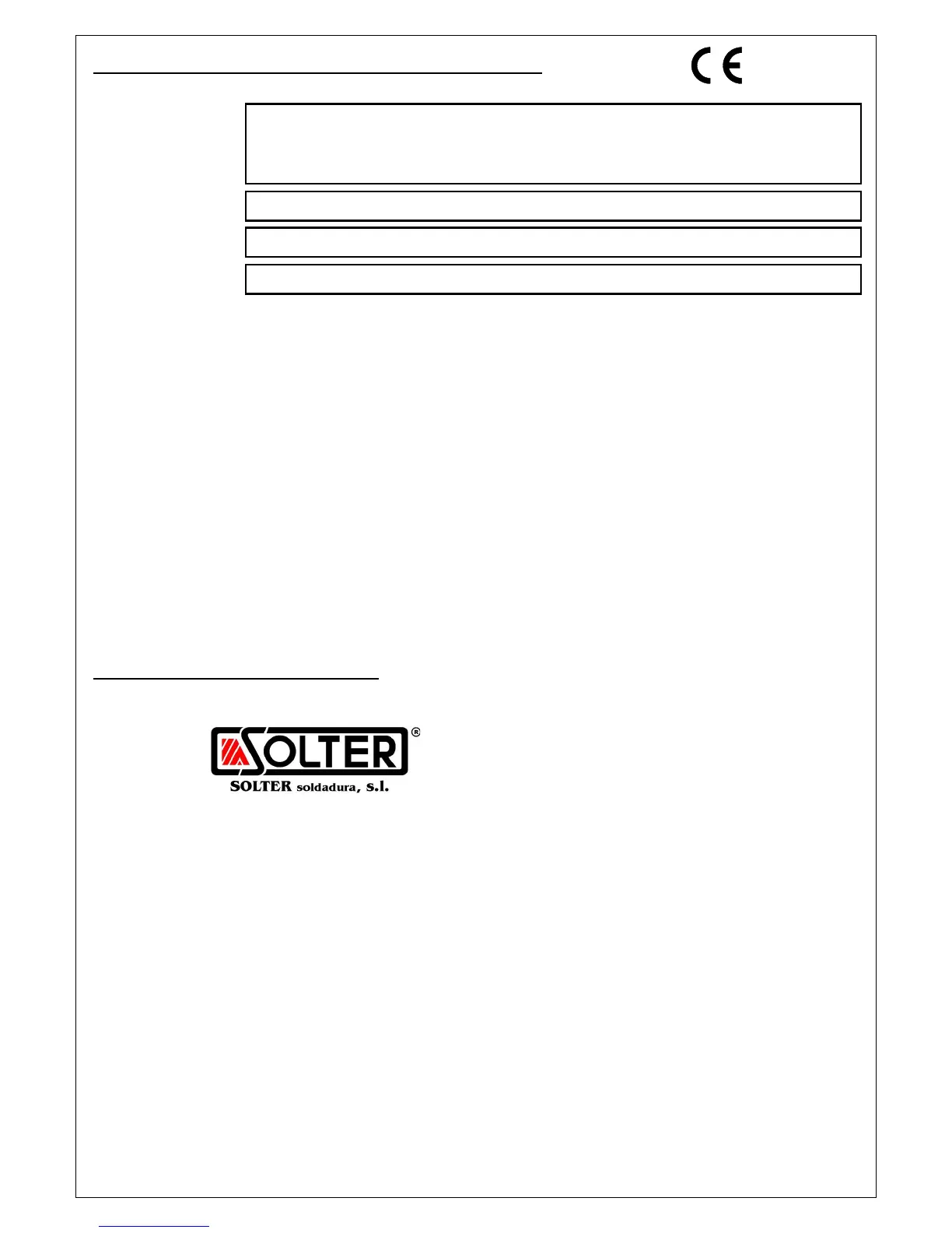Exija su cumplimentación al adquirir el arrancador. SOLTER SOLDADURA S.L. garantiza a partir de la fecha de