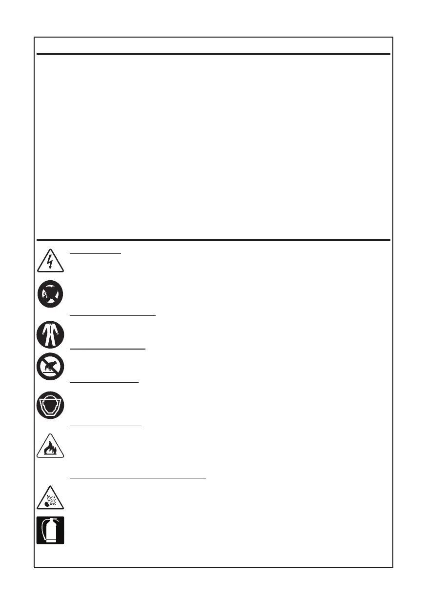 must be totally protected. Use safety boots, gloves, oversleeves, gaiters and leather aprons.