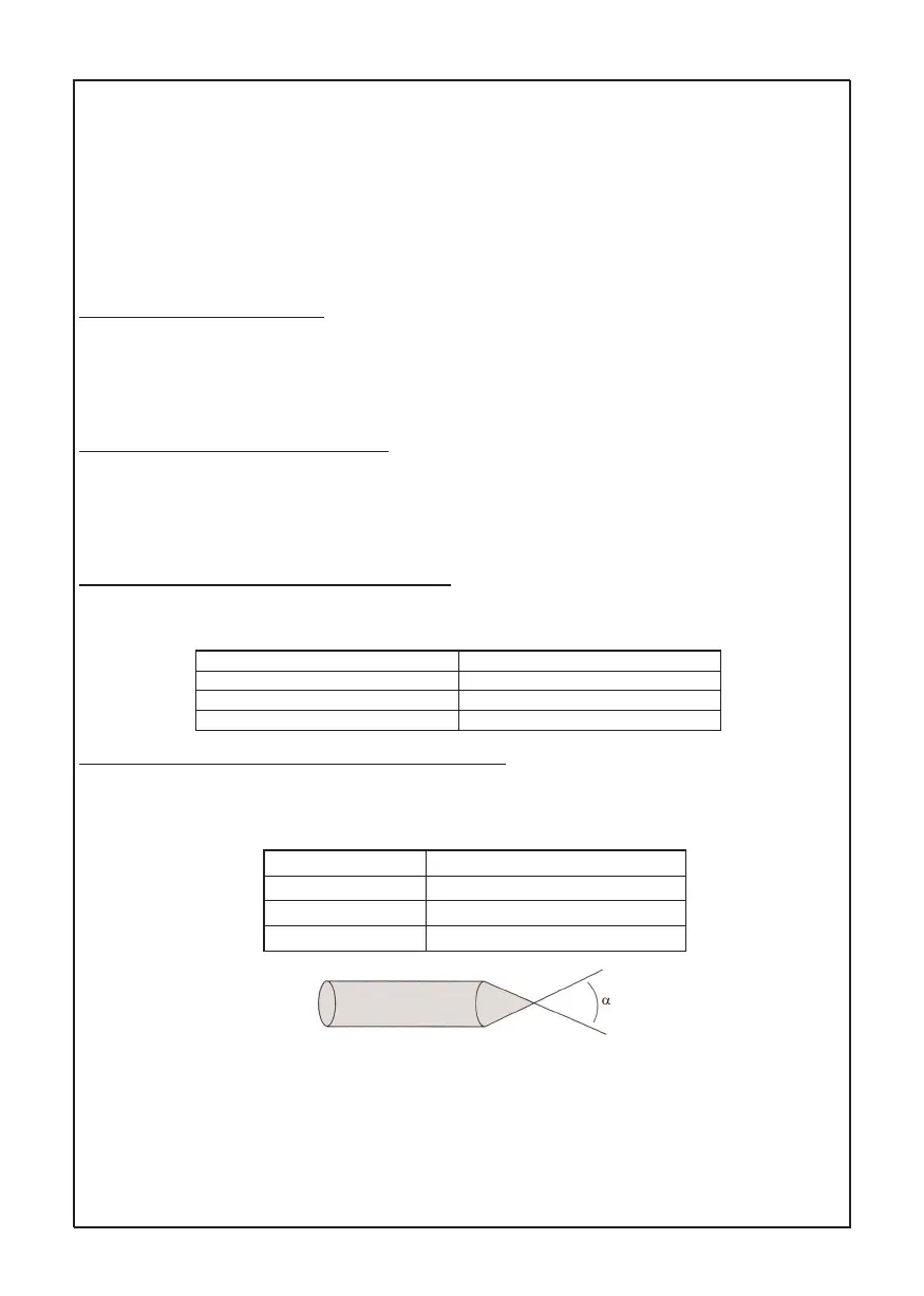 The table below indicates recommended values for the angle of variation with the welding current.
