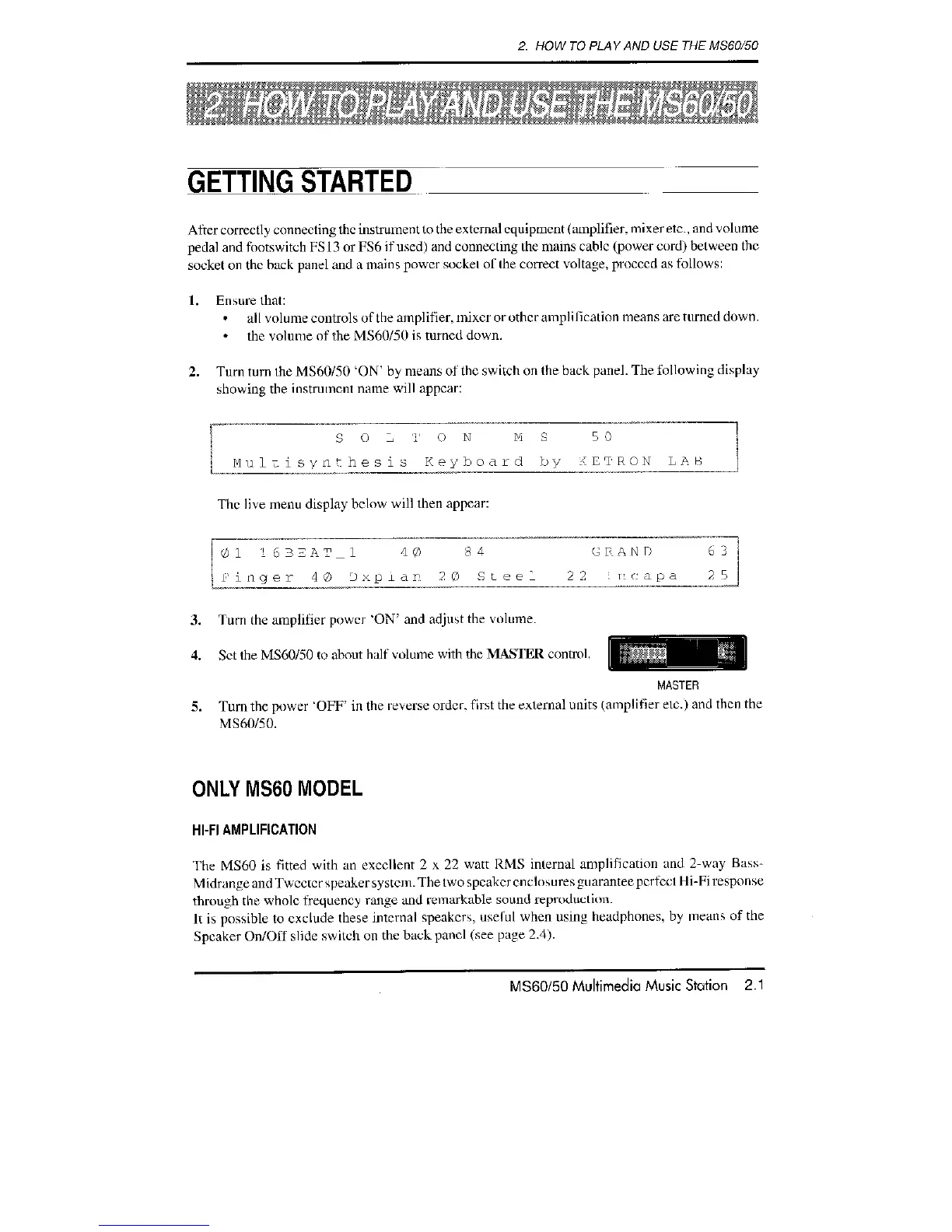 Solton MS60 - 2. HOW TO PLAY AND USE THE MS50; PLAYING THE MS50