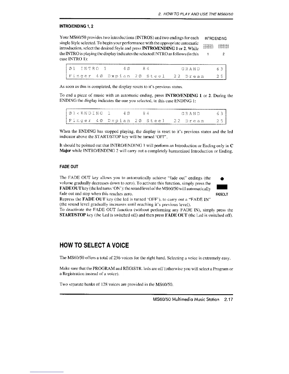 Solton MS60 - How to Select a Voice; Intro;Ending 1,2; Fade out