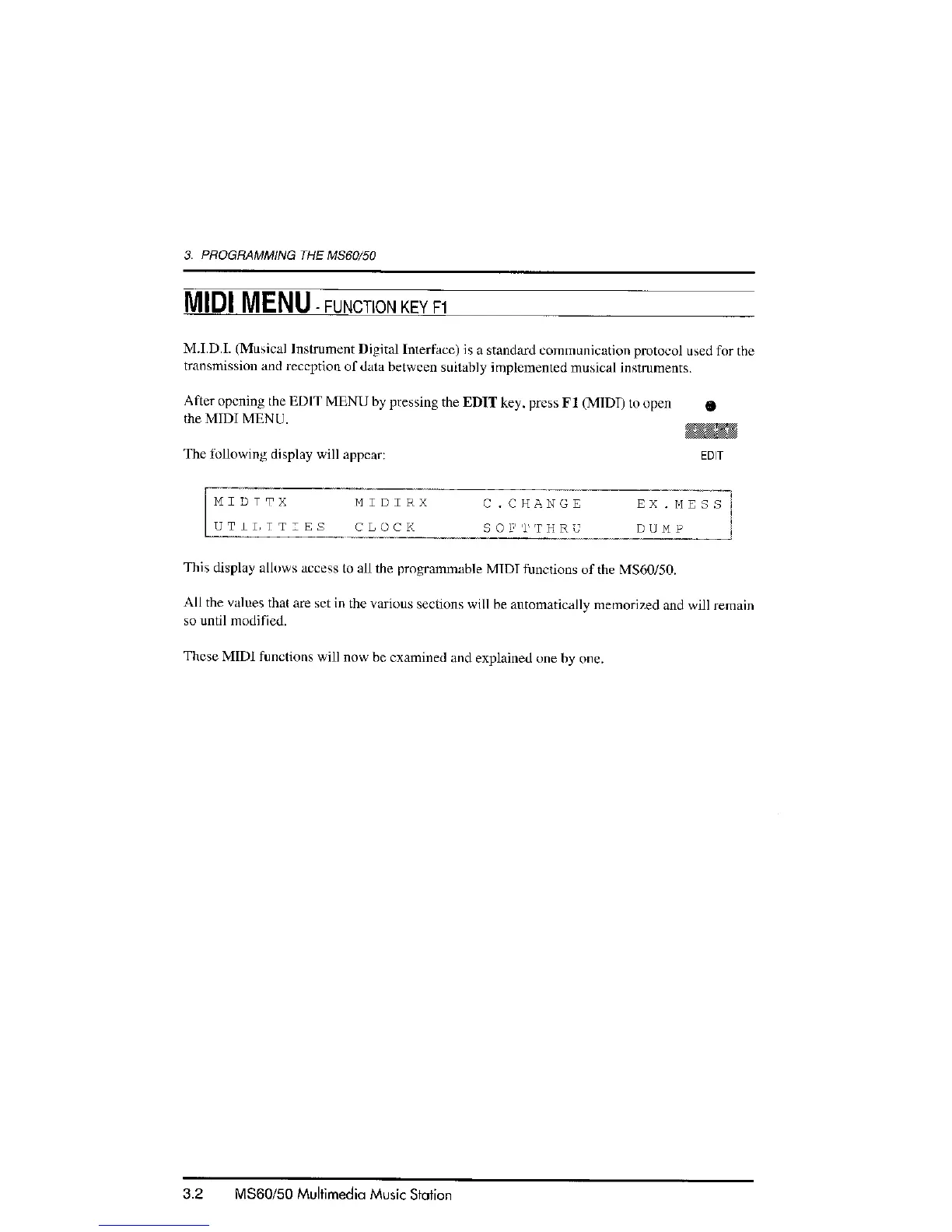 Solton MS60 - MIDI MENU - FUNCTION KEY F1
