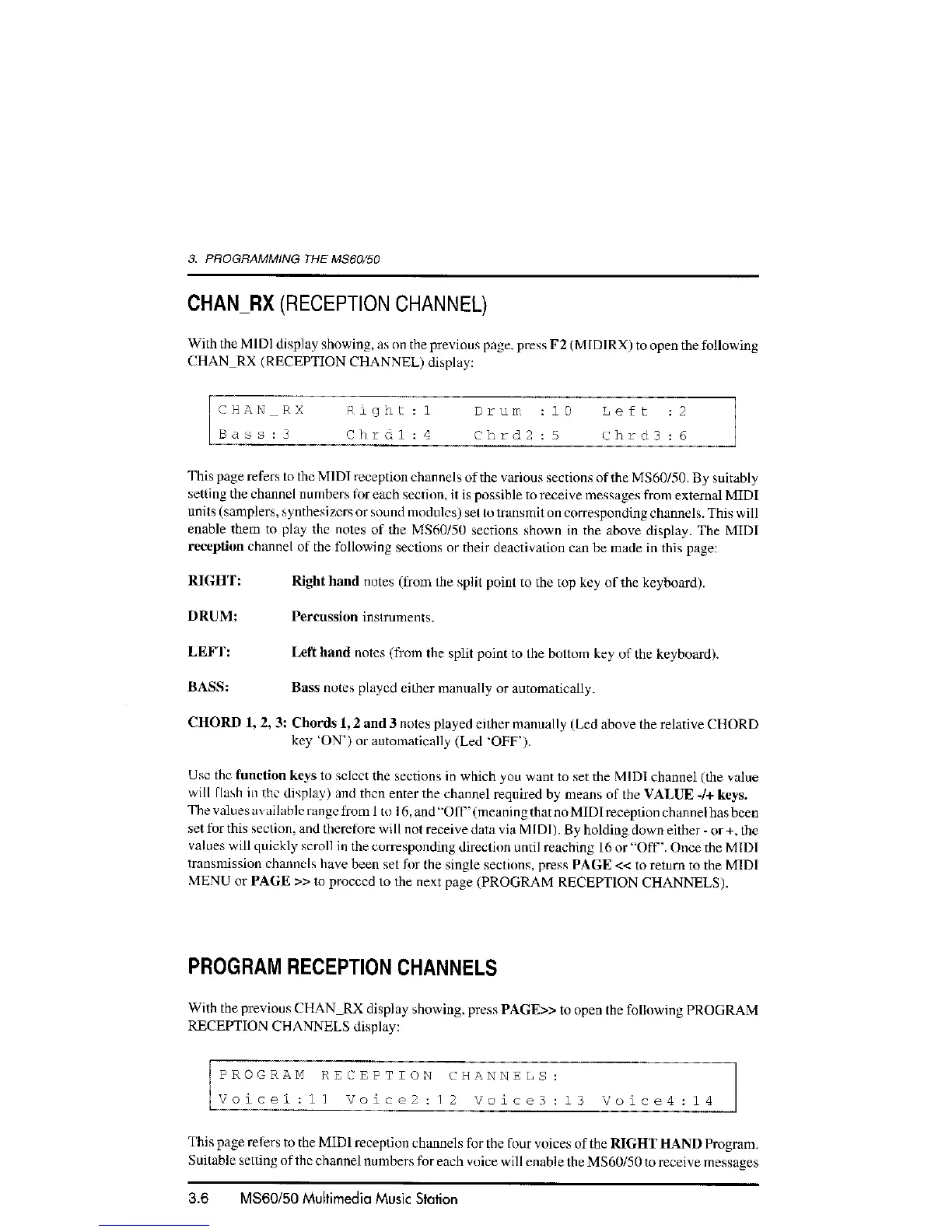 Solton MS60 - CHAN_RX (RECEPTION CHANNEL); PROGRAM RECEPTION CHANNELS