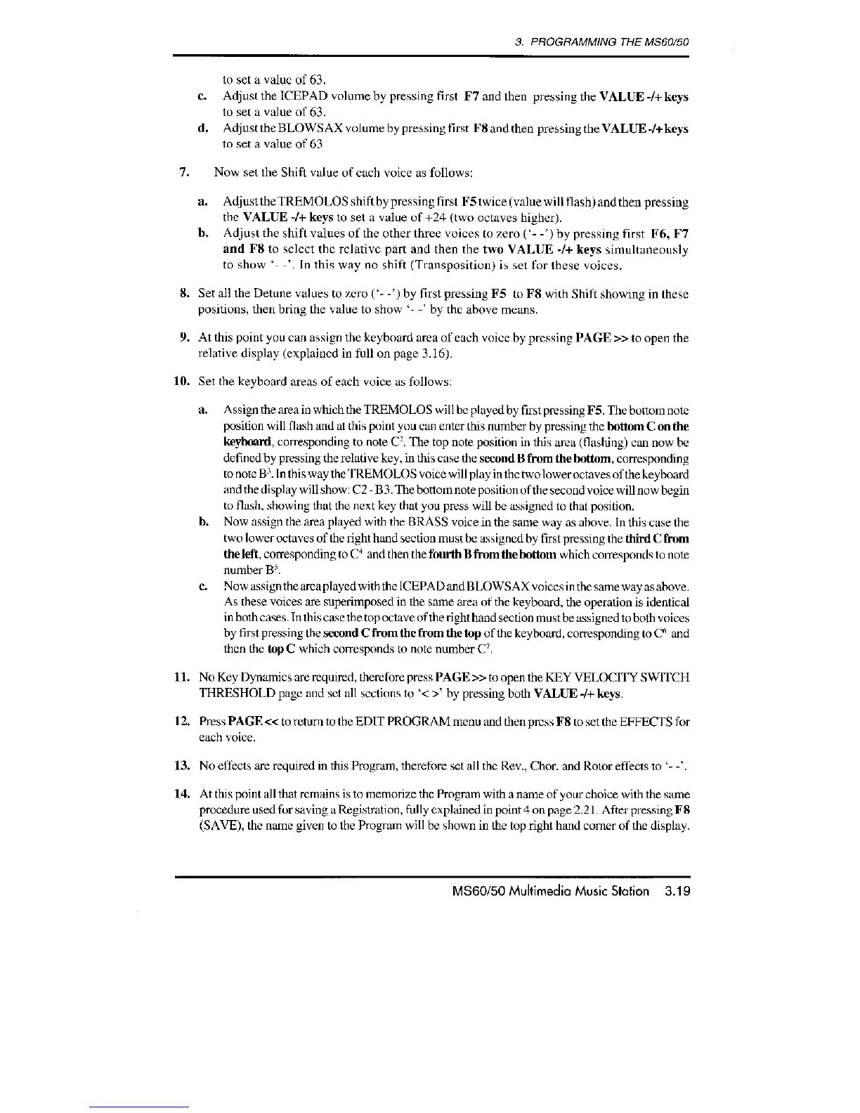 Solton MS60 - Assigning voices and parameters to program slots.