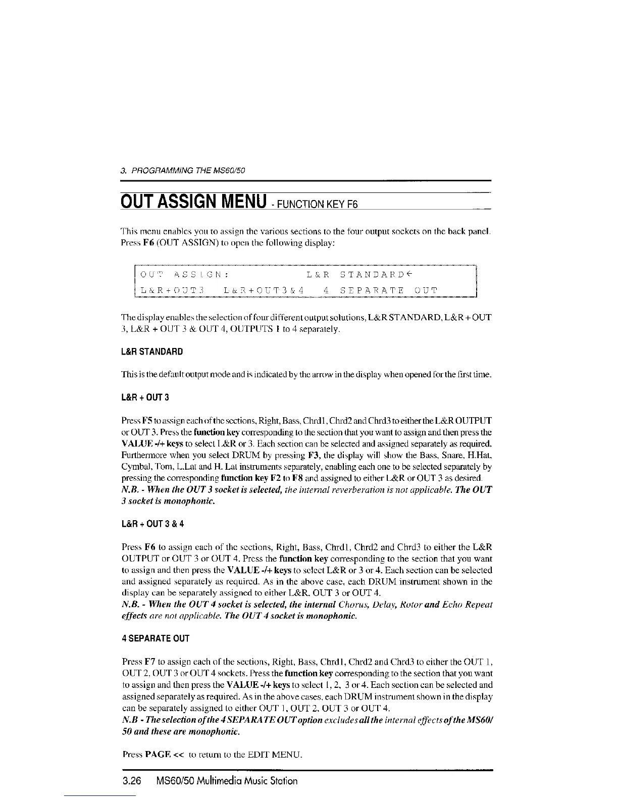 Solton MS60 - Out Assign Menu; L&R Standard; L&R + out 3; L&R + out 3 & 4