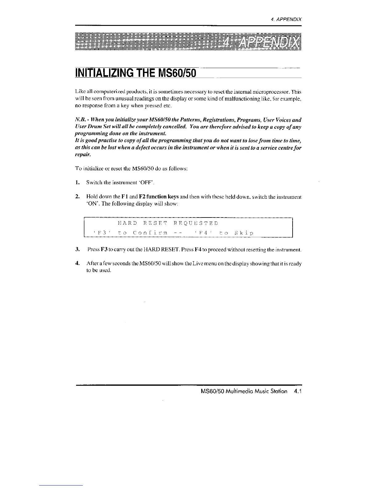 Solton MS60 - 4. APPENDIX; Initializing the MS60;50 Instrument