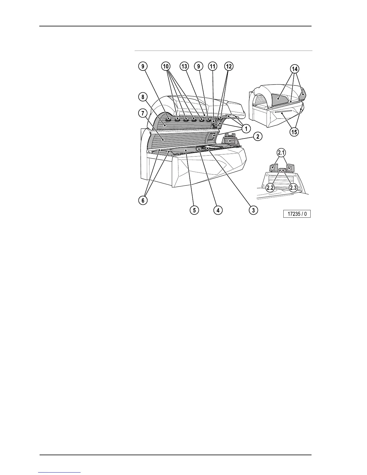 loudspeaker (2.1), headphone connection (2.2), MP3-connction (2.3)