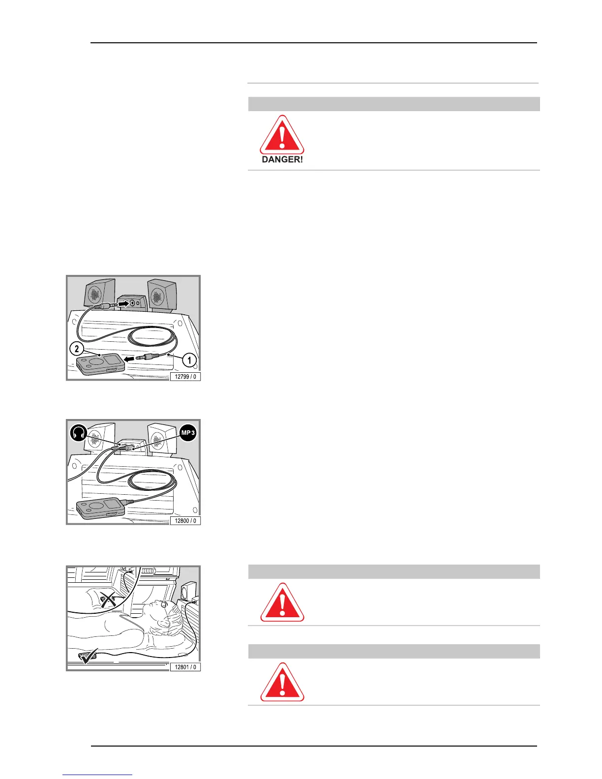 – Do not pull on cable when unplugging MP3 player or