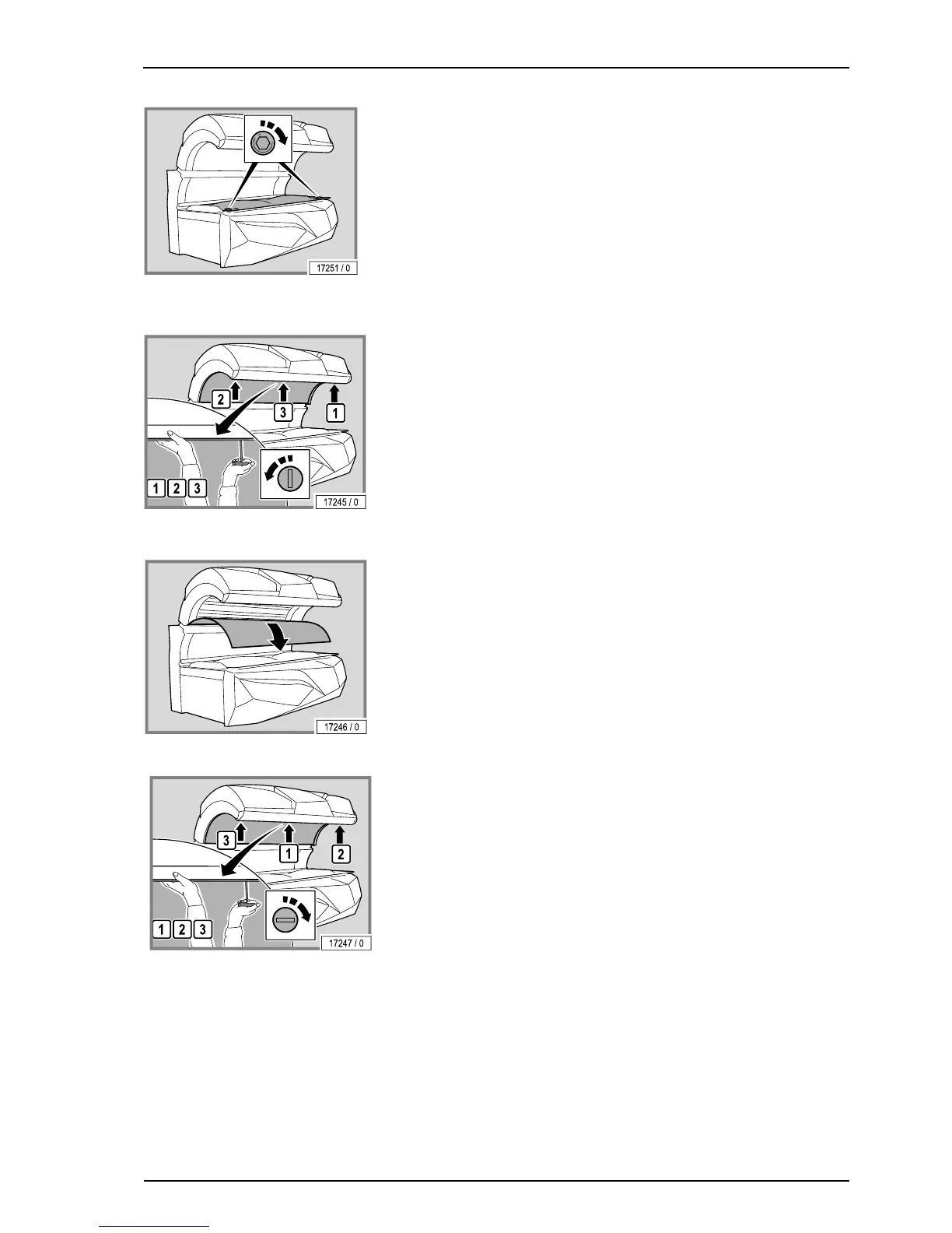 – Carefully lower the canopy panel on the scratch protection (service kit).