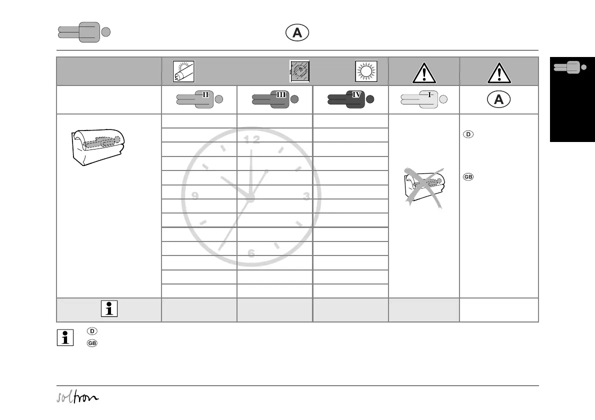 SOLTRON M-50 - Empfohlene Bräunungszeiten