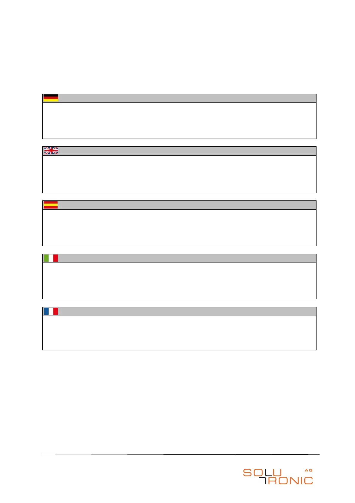Solutronic AG assumes no liability for damages caused by failure to observe warnings given in the