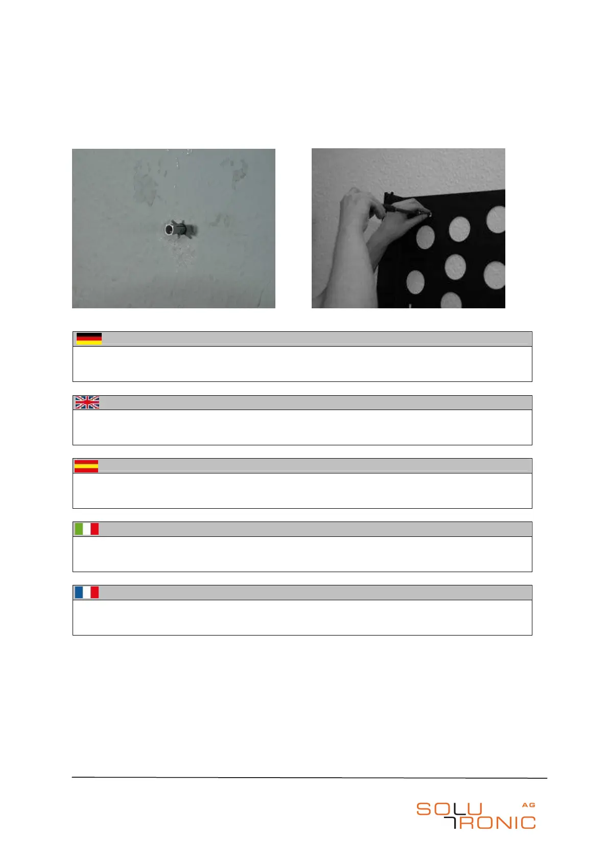 Insert the wall plugs Fix the mounting rack