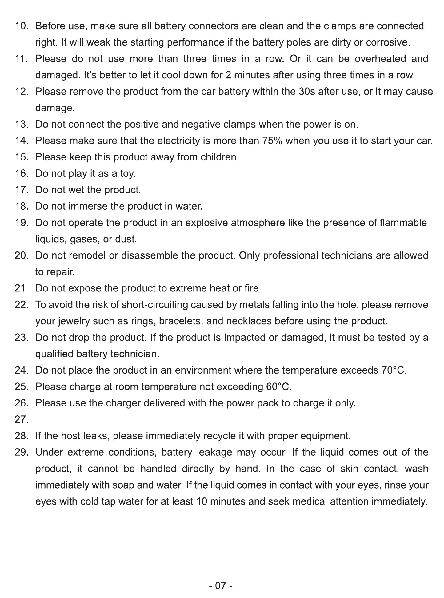 Please make sure that the electricity is more than 75% when you use it to start your car.