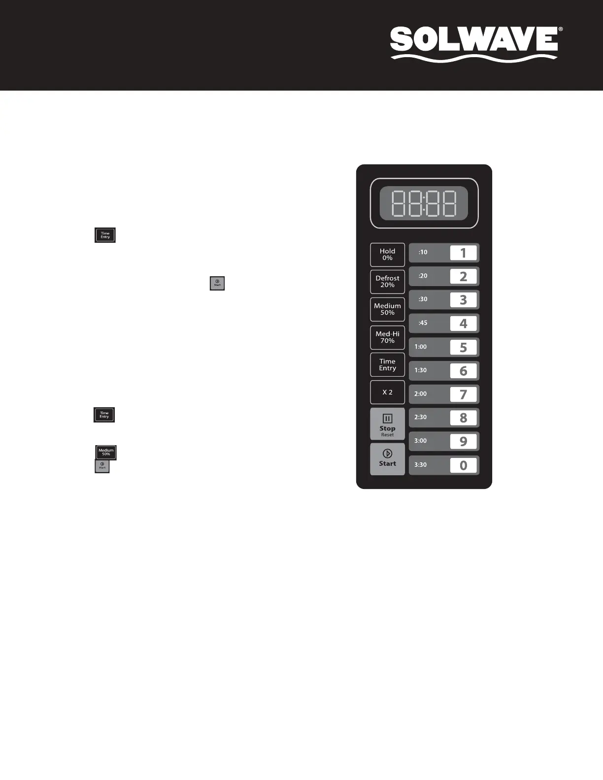 4. Press number keys 1, 1, and 5 to input the cooking time; the LED will