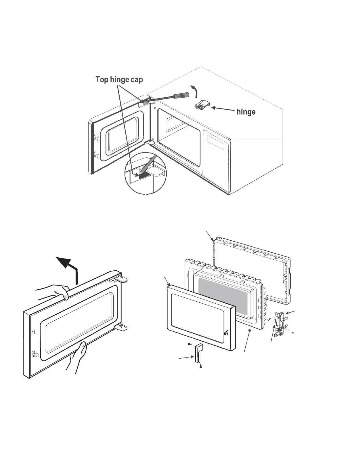 Reinstall top hinge cap.