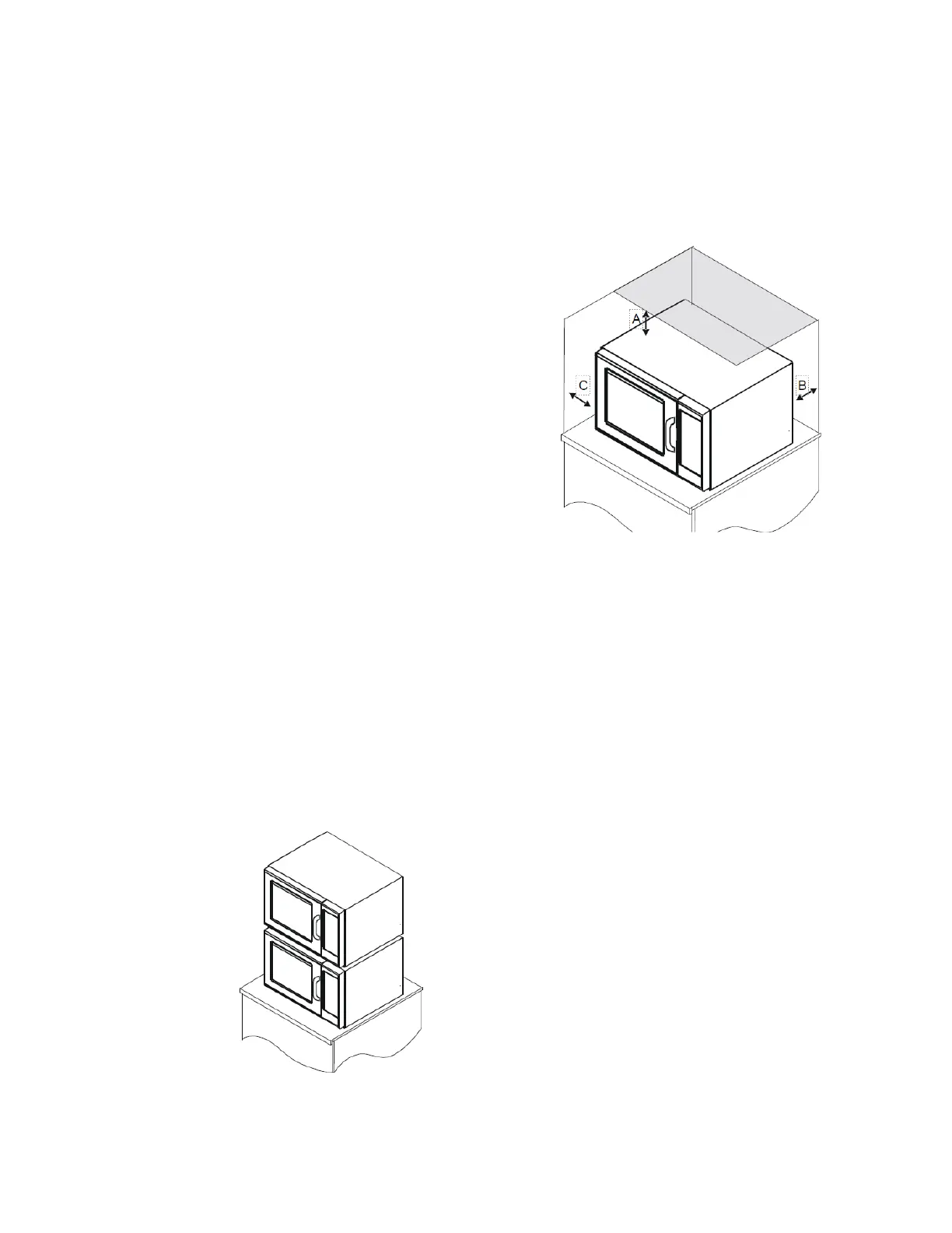 • Do not install oven next to or above source of heat,
