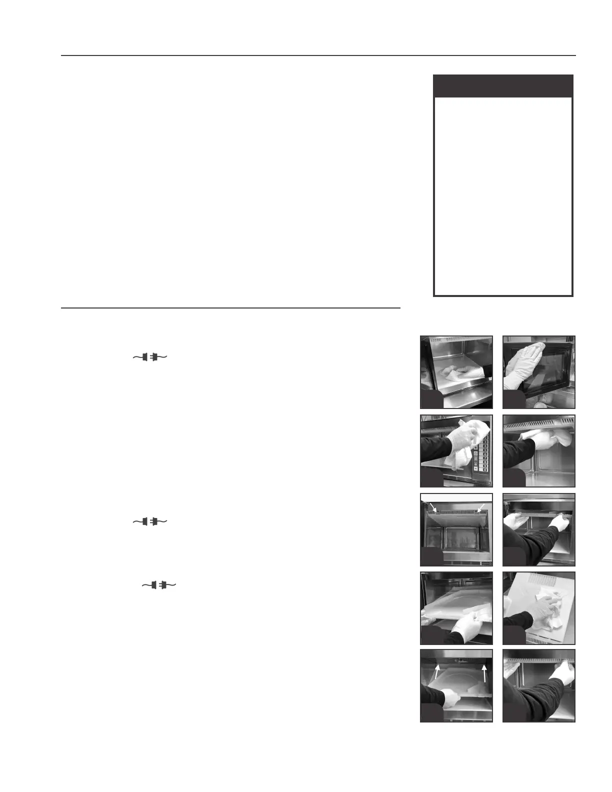Never turn on or operate oven during cleaning procedure. Always unplug oven before