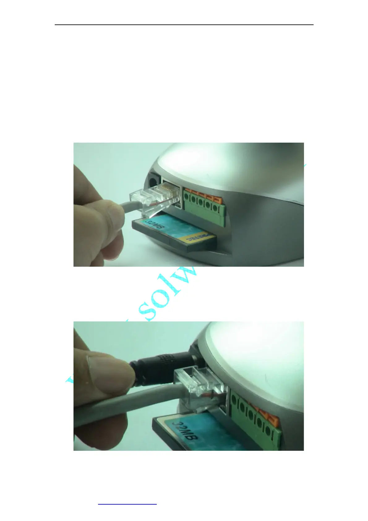 Plug the included Ethernet cable into the RJ-45 connector at the back of the camera as