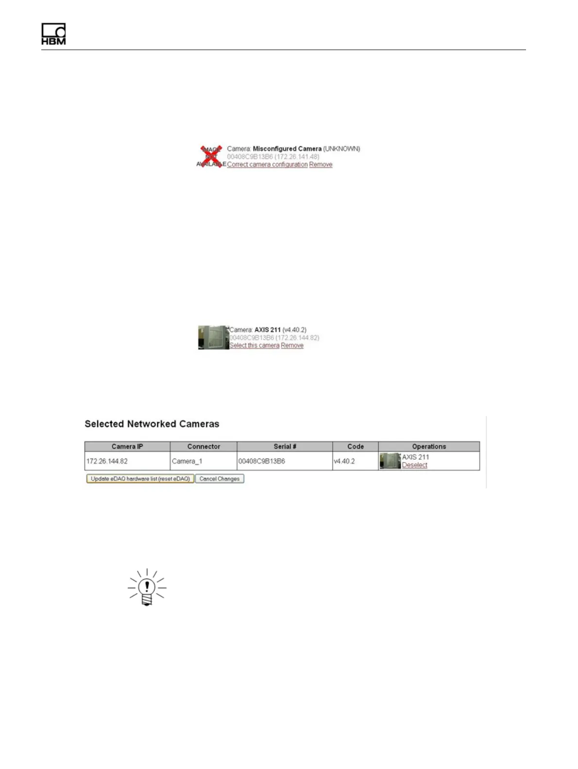 and the web interface to return to the manage network cameras page. If the