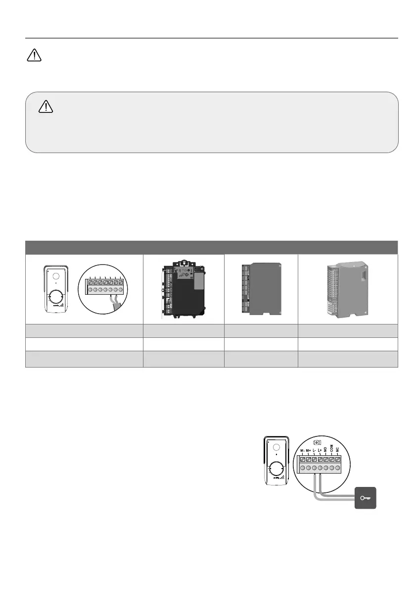 Raccordez la sortie contact sec (COM et NO) de la platine de rue à l’électronique de la motorisation. Si le raccordement