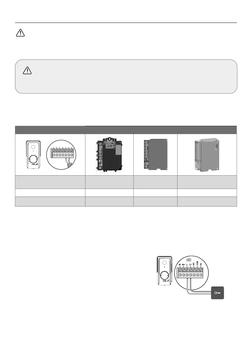 Observe the correct polarity: refer to the electric latch instructions.